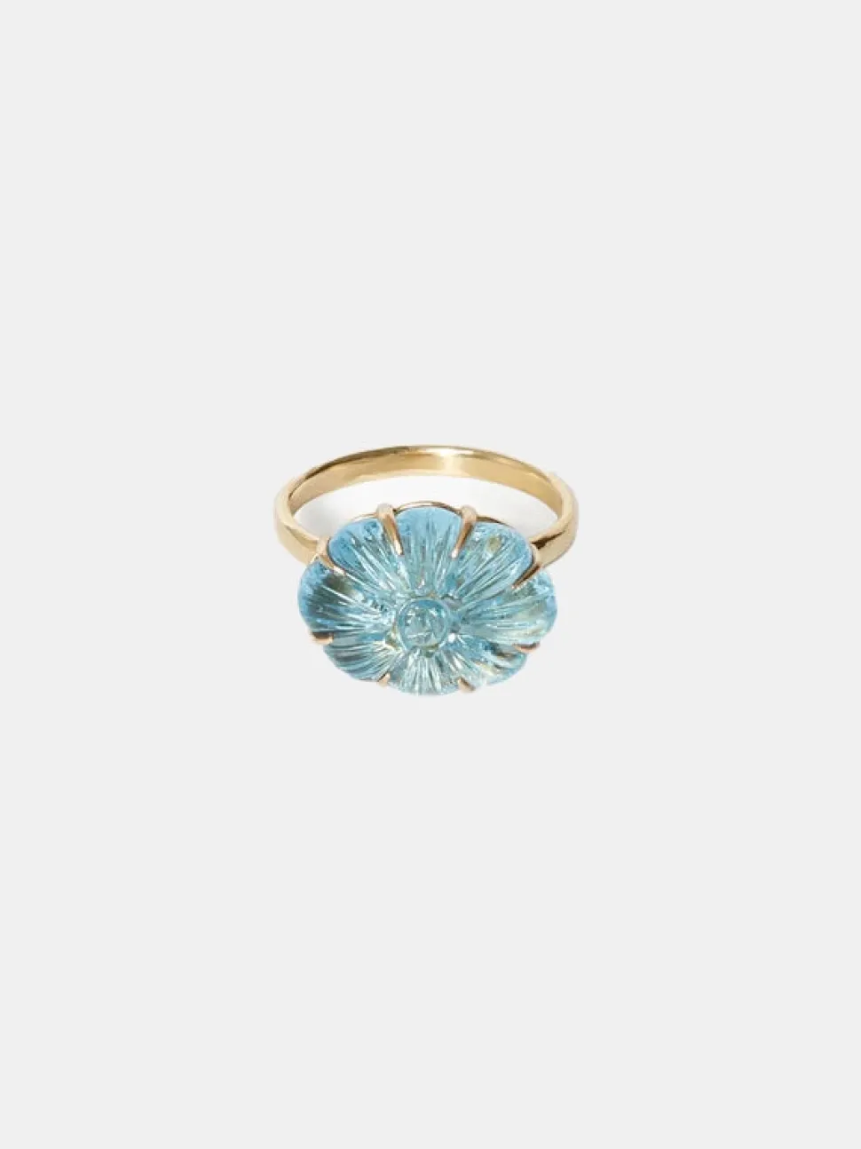 The Blue Topaz Ring by Chan Luu features a 14k gold ring and a hand cut blue topaz flower.