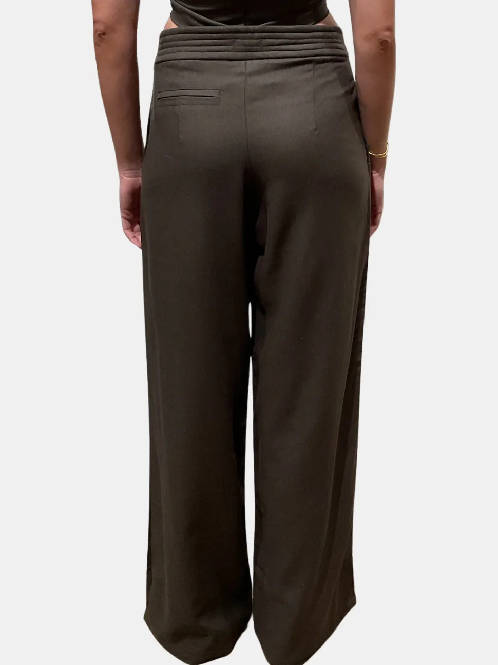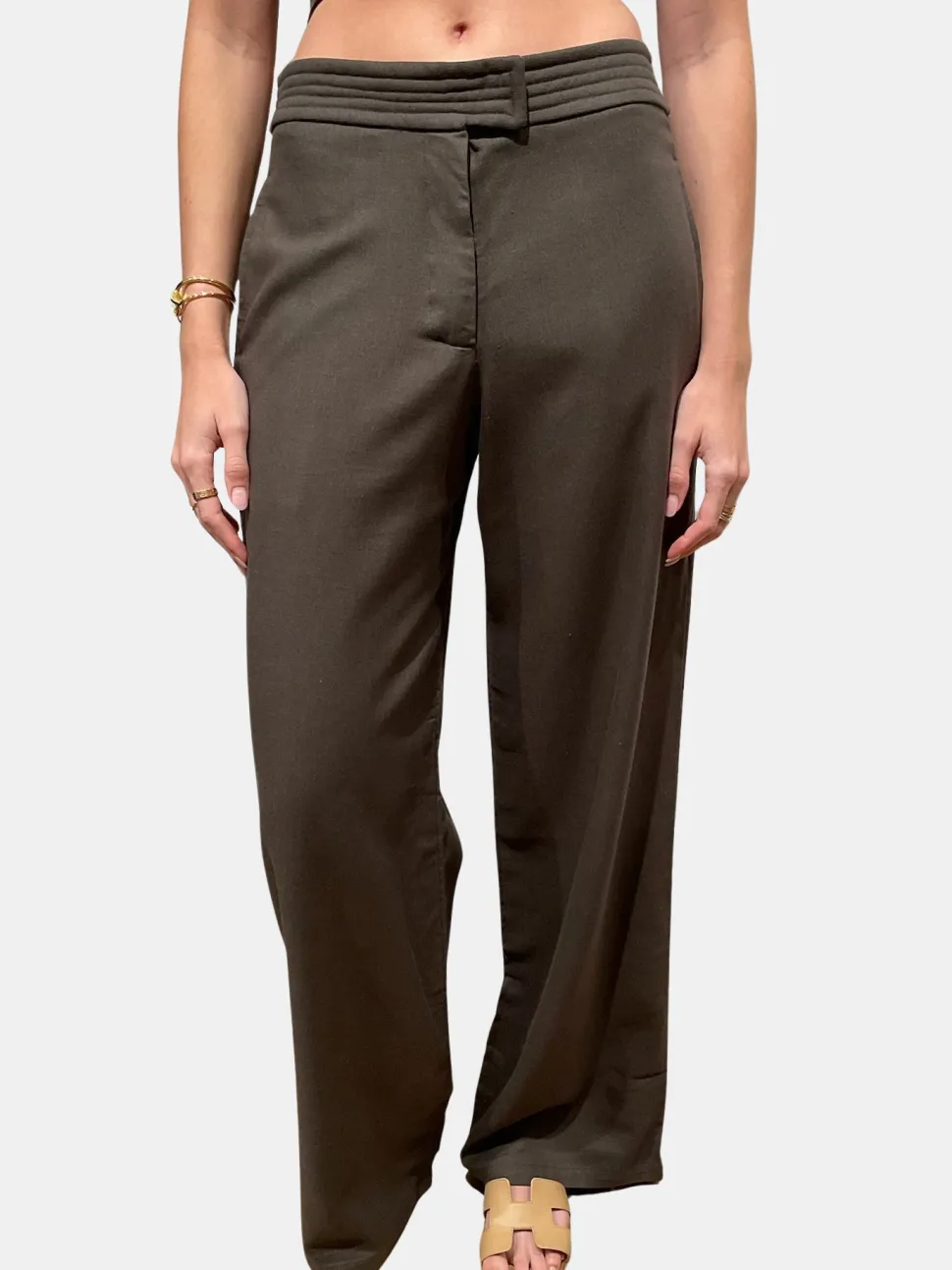 A modern take on classic trousers, featuring clean lines, refined tailoring, and thoughtful details for an effortlessly polished look. Shown in Olive.