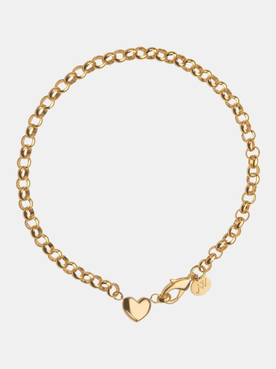 A heart seamlessly integrated into a chain—a true standout. This bold, rounded rolo chain necklace features a matching heart accent by the clasp and rests high on the neck at a 16″ length. Style it with the clasp and heart at the back for a sleek look, or bring them to the front to pair a pendant alongside the heart.