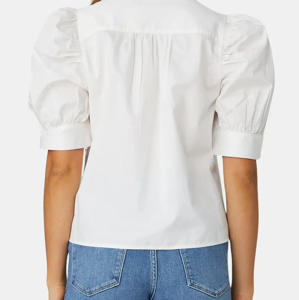 Indulge in timeless sophistication with our Savannah blouse. The classic white color evokes the essence of spring. Whether paired with your go-to denim or tailored trousers, this top exudes a sense of relaxed elegance. Shown in White.